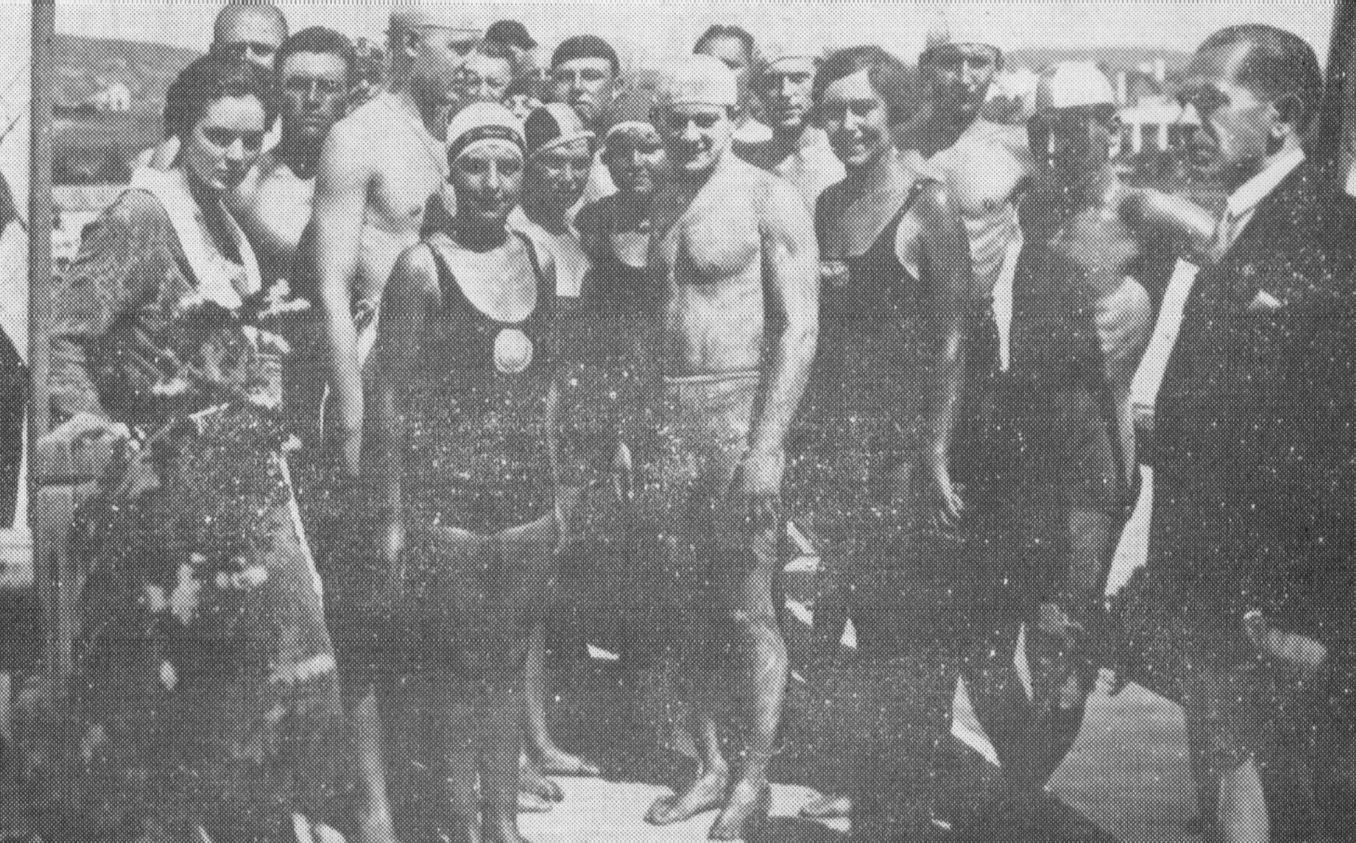 Az 1948. évi balatoni úszóverseny résztvevői, jobb oldalt Pártos Artúr