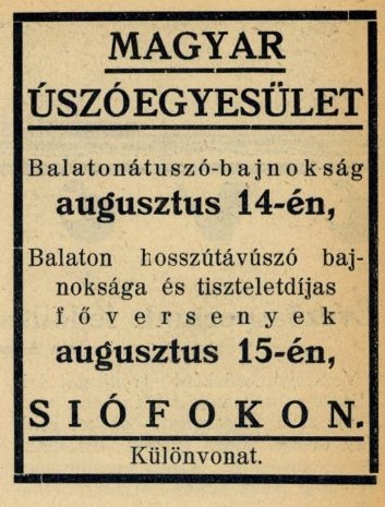 A képeken: tudósítás az 1924-es és az 1925-ös Balaton-átúszásról, a Balaton-átúszó verseny felhívása 1926-ból.