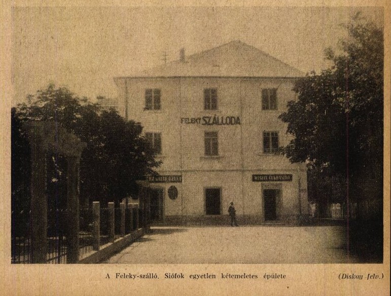 Siófok korzóján 1924-ben újonnan rendezték be a Feleky-szállót. Már a második emeletet építtette Feleky úr a szálló régi egyemeletes épületére és így a Feleky szálloda egész Siófok egyetlen két emeletes épülete lett, pazarul és ízlésesen berendezett szobákkal. A szálloda mellett volt a Feleky-kert és tejivó. A tejtermékek mellett könnyebb ételek is kaphatók voltak.
