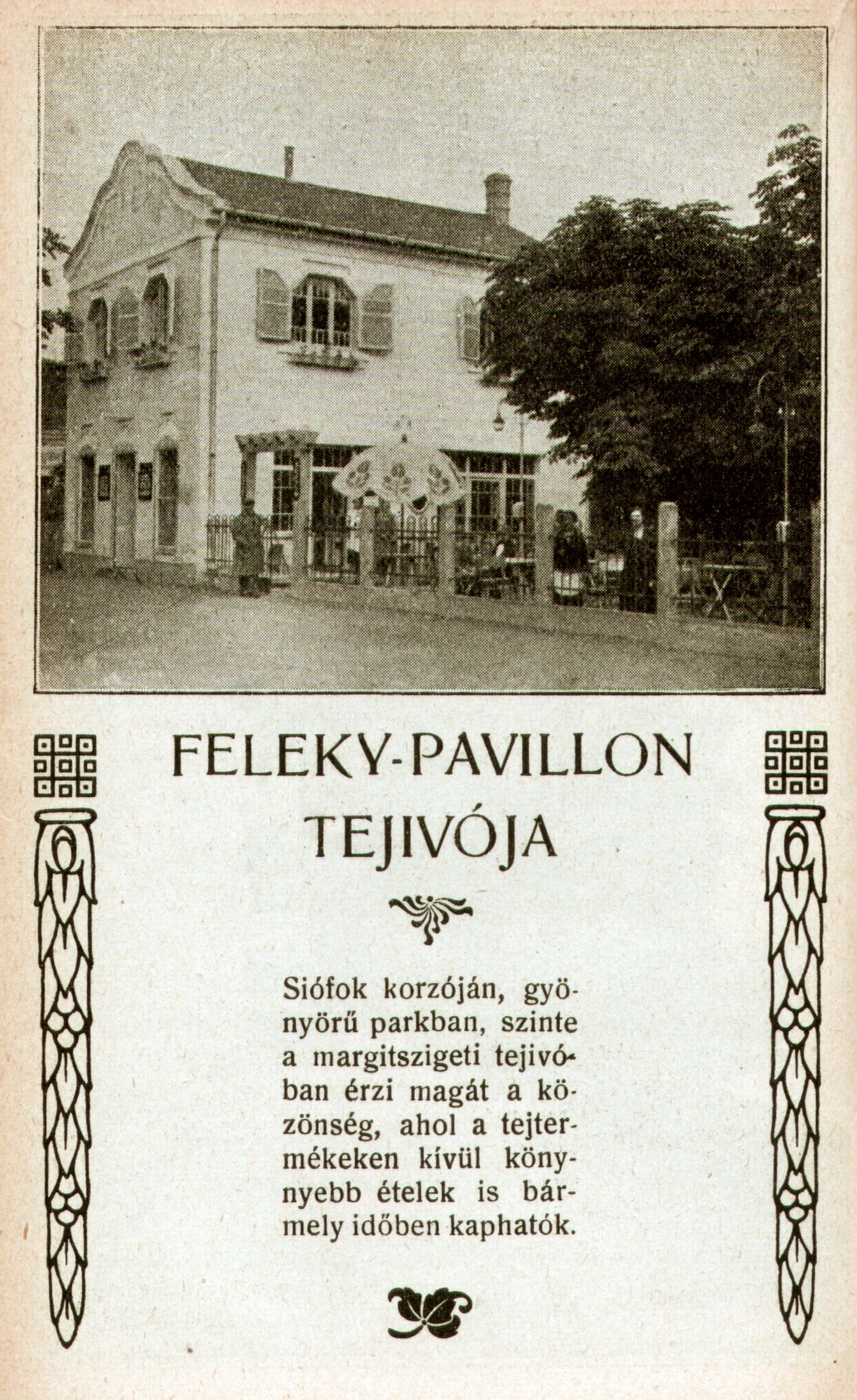 A képeken a Feleky-szálló, Feleky-kert és a Feleky-pavilon tejívója, valamint Feleki Kamill